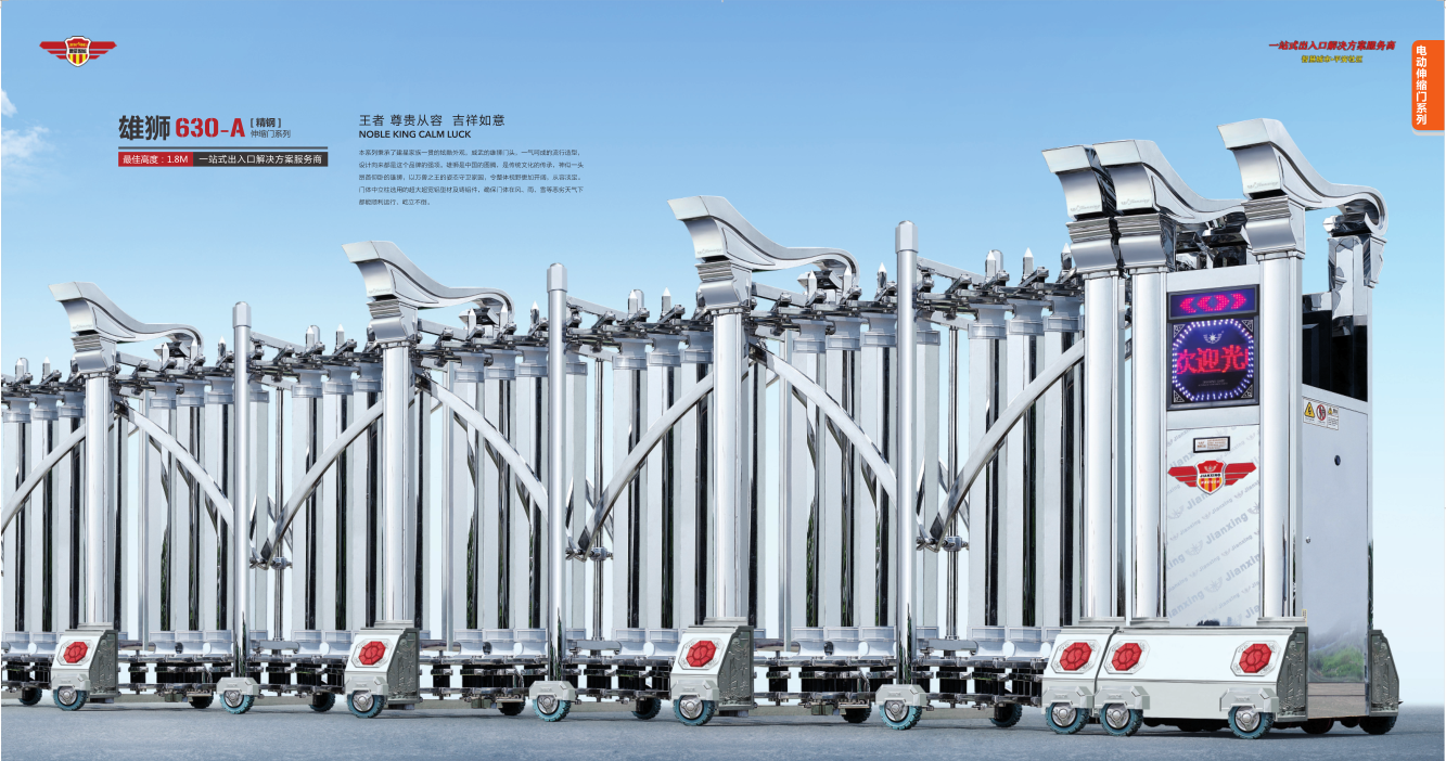 不銹鋼伸縮門的伸縮比例通常在1:1到1:2之間。這意味著門的長度可以在一定范圍內(nèi)自由伸縮,而門的高度則保持不變。伸縮比例的具體值取決于門的材質(zhì)、設(shè)計和制造工藝等因素。